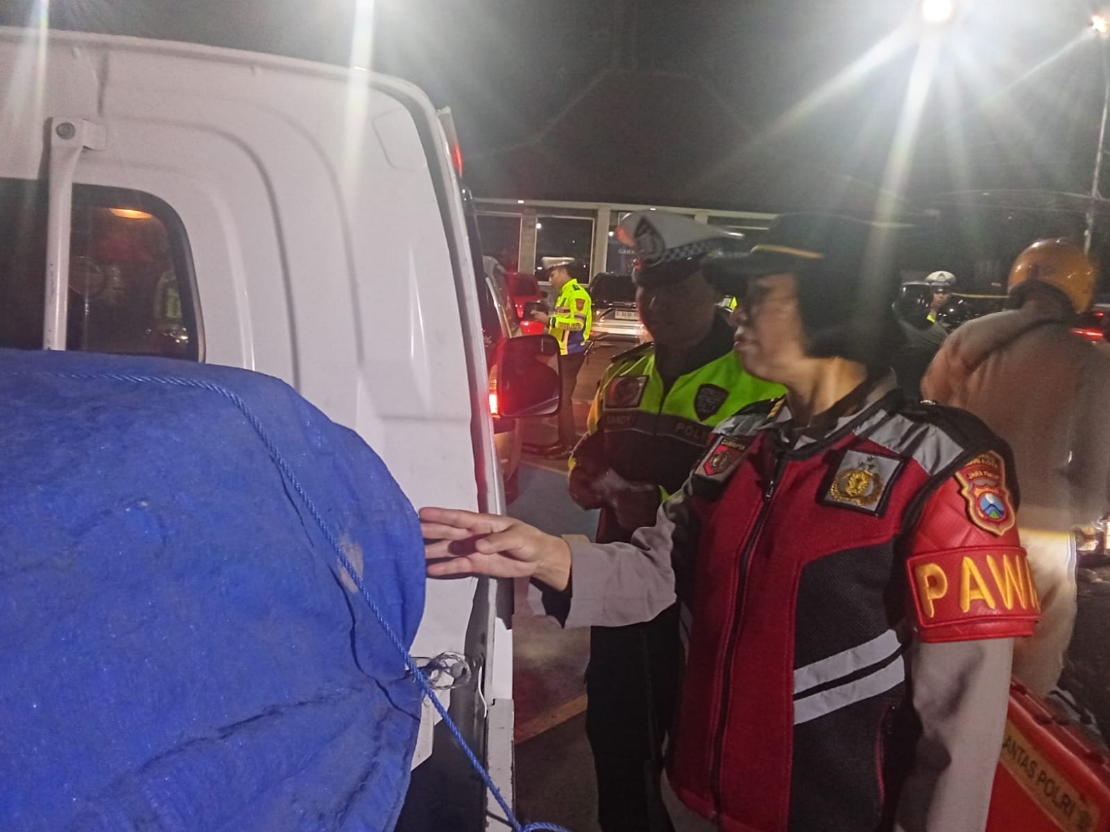 Dalam kegiatan ini, petugas gabungan turut memeriksa barang bawaan milik pengendara untuk mengantisipasi adanya senjata tajam (sajam) maupun benda berbahaya lainnya.