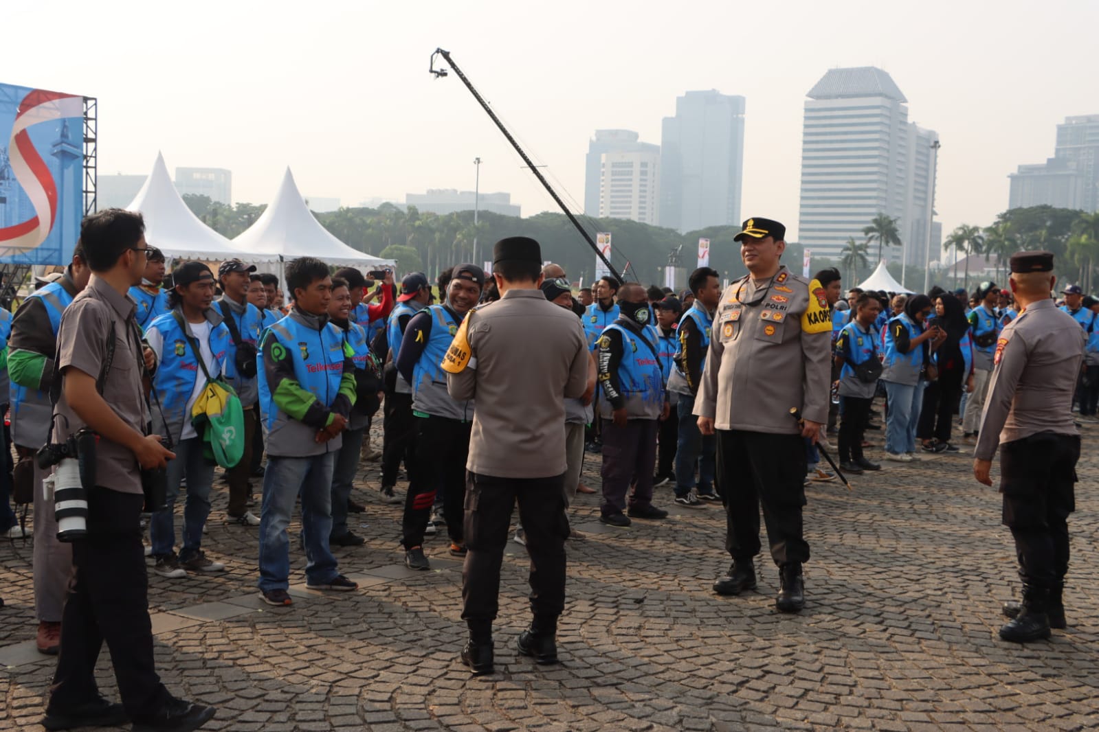 “Alhamdulillah hari ini disatu tahun Pemerintahannya Bapak Presiden Prabowo dan Wakil Presiden Gibran hari ini teman-teman komunitas ojol melaksanakan kegiatan aksi dalam bentuk yang lain. Bentuknya adalah Apel Ojol Jaga Kamtibmas. Dengan mengusung tema Jaga Jakarta Bersama Polda Metro Jaya,” kata Sigit.