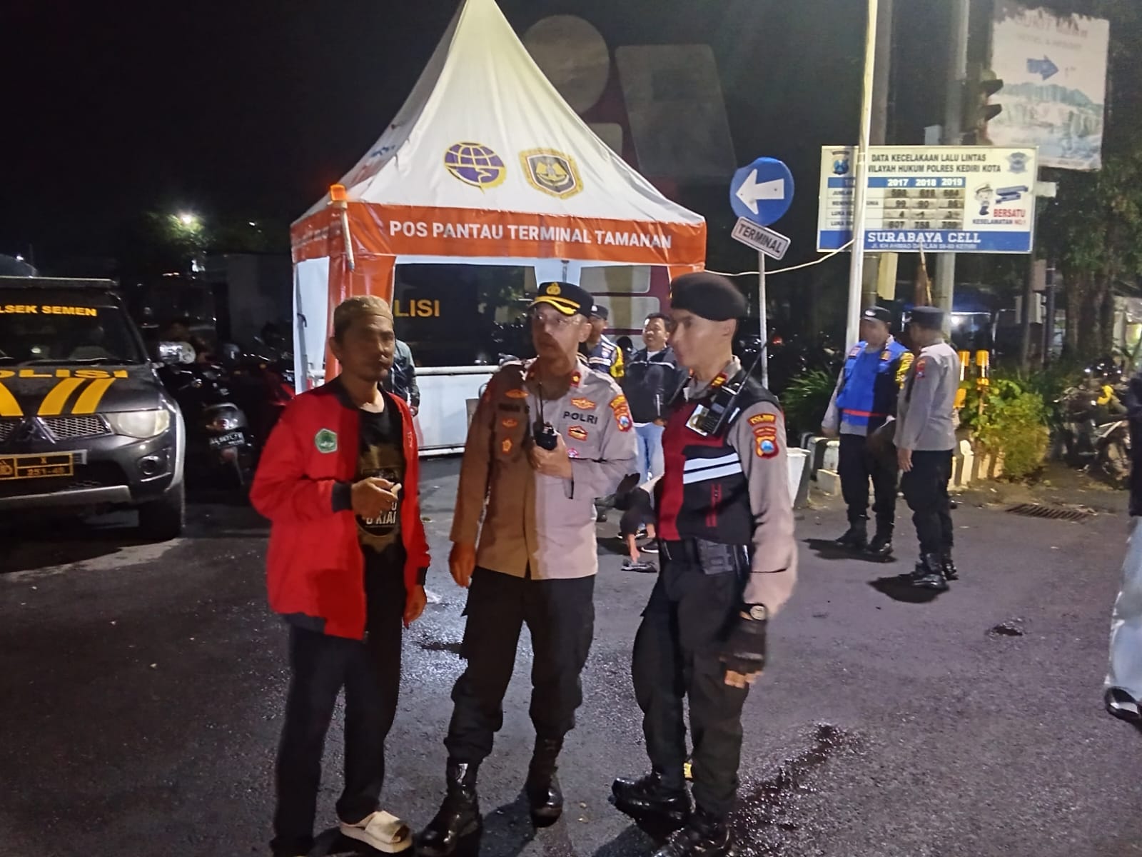 Guna mengantisipasi potensi gangguan keamanan dan kelancaran arus lalu lintas, Polres Kediri Kota bersama Polsek jajaran menggelar pengamanan besar-besaran. Pengamanan itu dipimpin langsung oleh Kabag Ops Polres Kediri Kota Kompol Iwan Setyo Budhi.