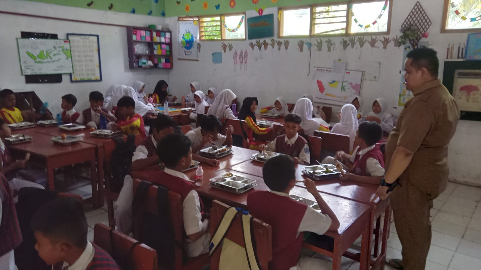 Dan kita juga memastikan siswa mendapatkan makanan gizi yang seimbang sehingga diharapkan akan berpengaruh terhadap perkembangan otak. Ahamdulillah anak-anak hari ini sangat antusias mendapatkan makan siang gratis,” ujarnya.