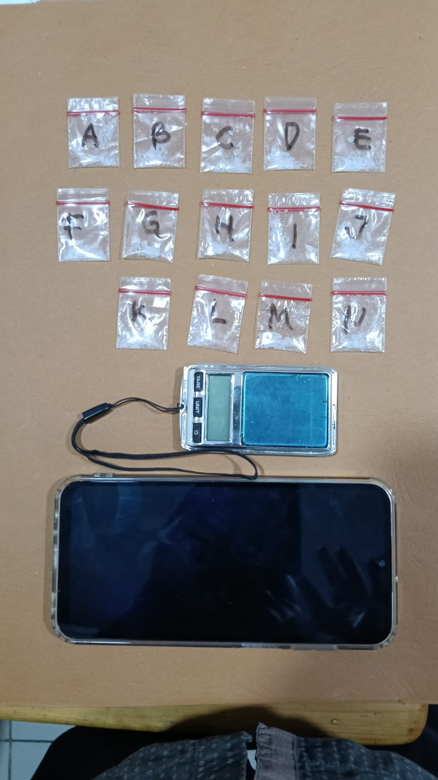 Dalam penggerebekan yang dipimpin Kanit Reskrim Iptu Azis Al Rais, bersama Panit Opsnal Ipda Renno, polisi menemukan 14 plastik bening berisi sabu seberat 2,72 gram, satu timbangan digital, dan satu unit ponsel merek Samsung yang digunakan pelaku untuk transaksi.