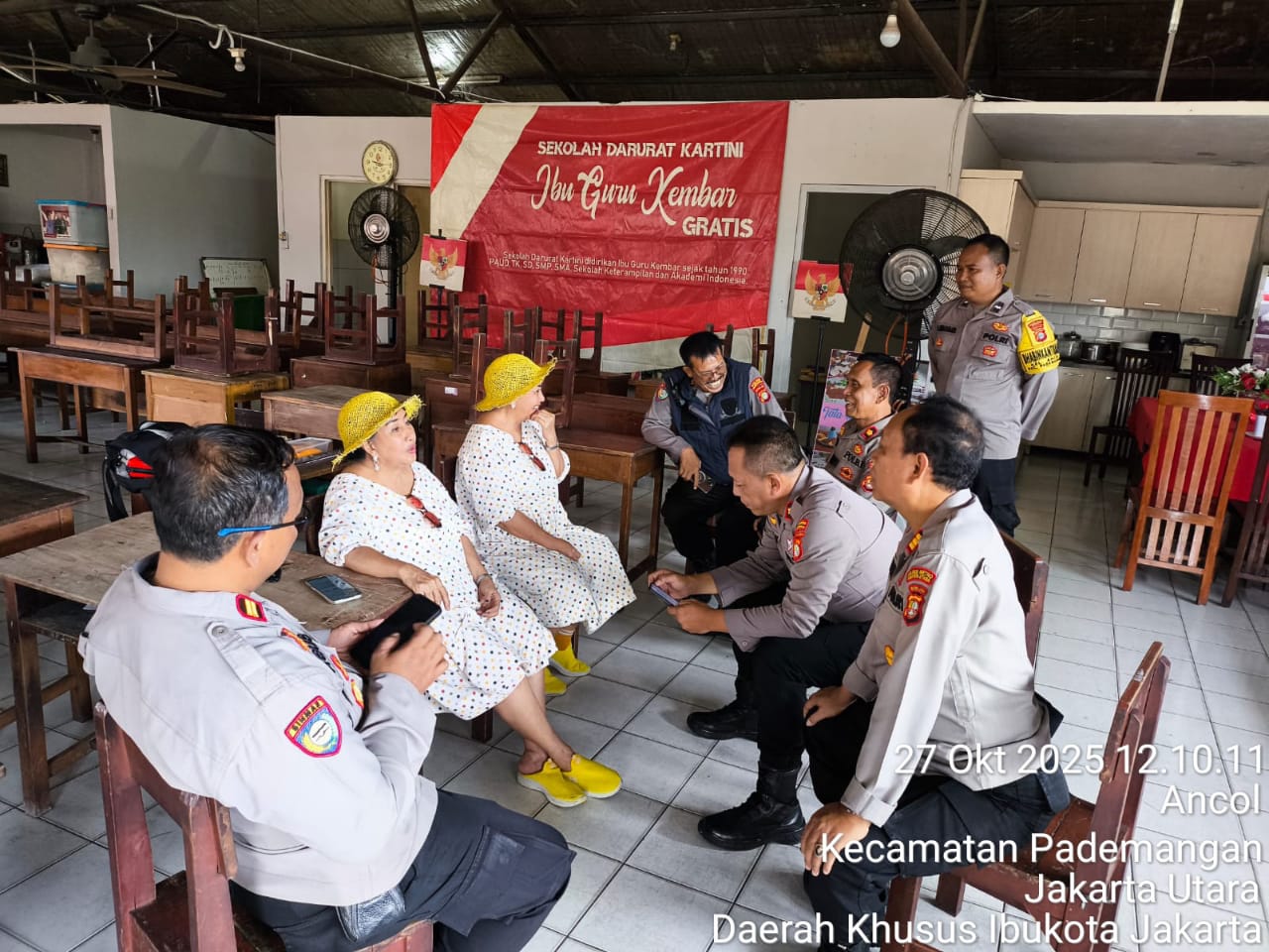 Jakarta Utara — Upaya mendekatkan Polri dengan masyarakat terus dilakukan dalam program Jaga Jakarta Jaga Warga. Senin siang (27/10/2025), Satuan Binmas Polres Metro Jakarta Utara mengunjungi Sekolah Darurat Kartini Ibu Kembar di kawasan Kampung Walang, Jalan Lodan Raya, Kelurahan Ancol, Kecamatan Pademangan.