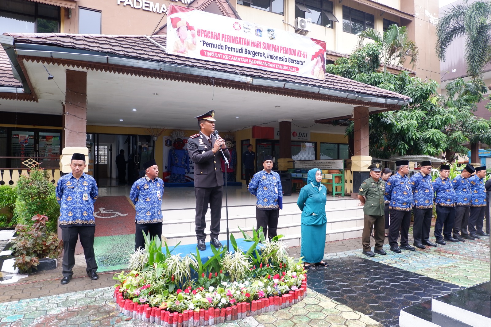 Upacara dipimpin oleh Camat Pademangan, Drs. Didit Mulyadi, M.A. selaku Inspektur Upacara, dan dihadiri unsur Forkopim Kecamatan, Polsek Pademangan, Koramil 02/Penjaringan, para Lurah, organisasi masyarakat, RT/RW, ASN, serta pelajar.