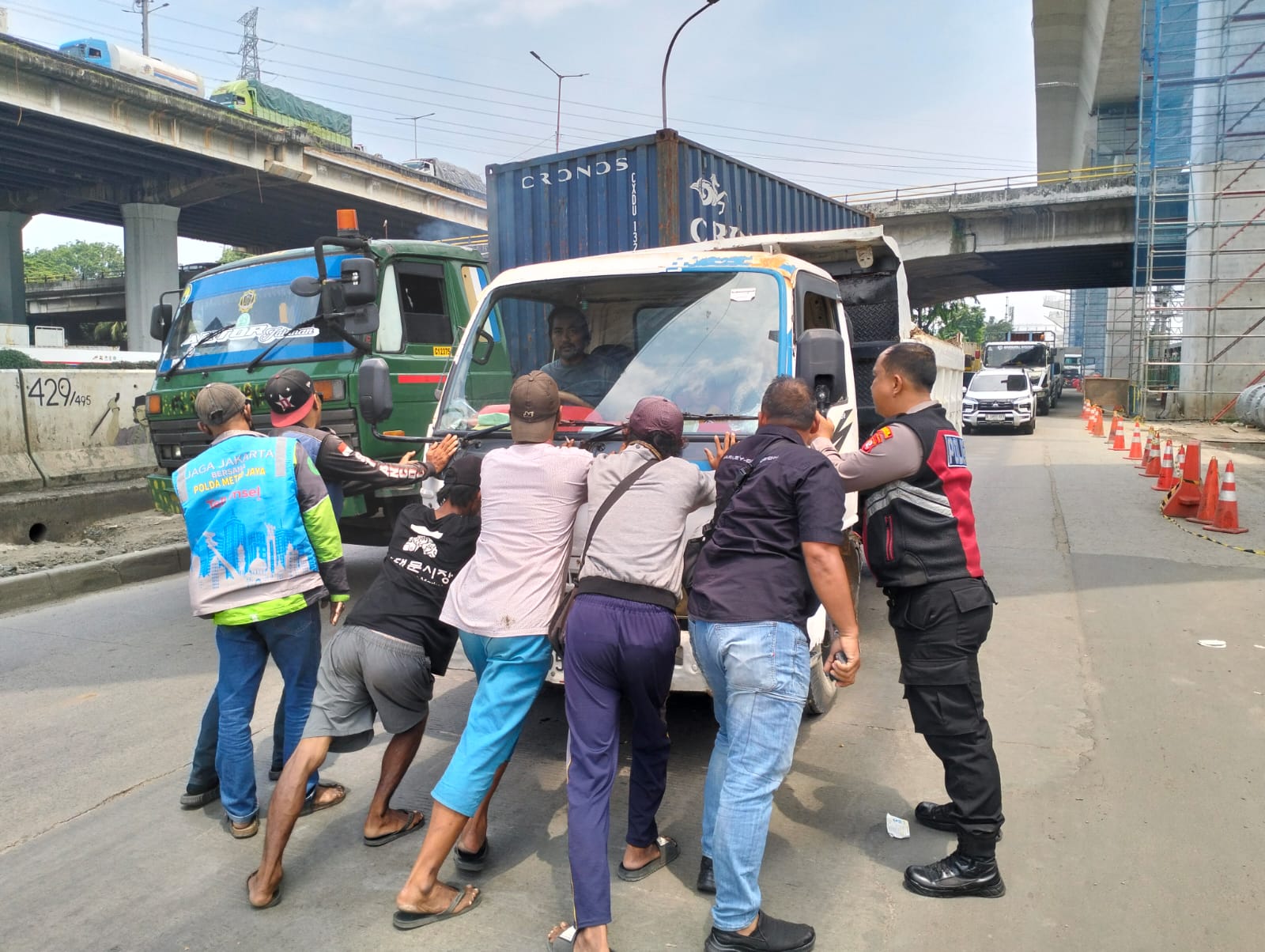 Sinergi Polisi Dan Warga Dorong Truk Mogok Di Depan Stasiun Ancol