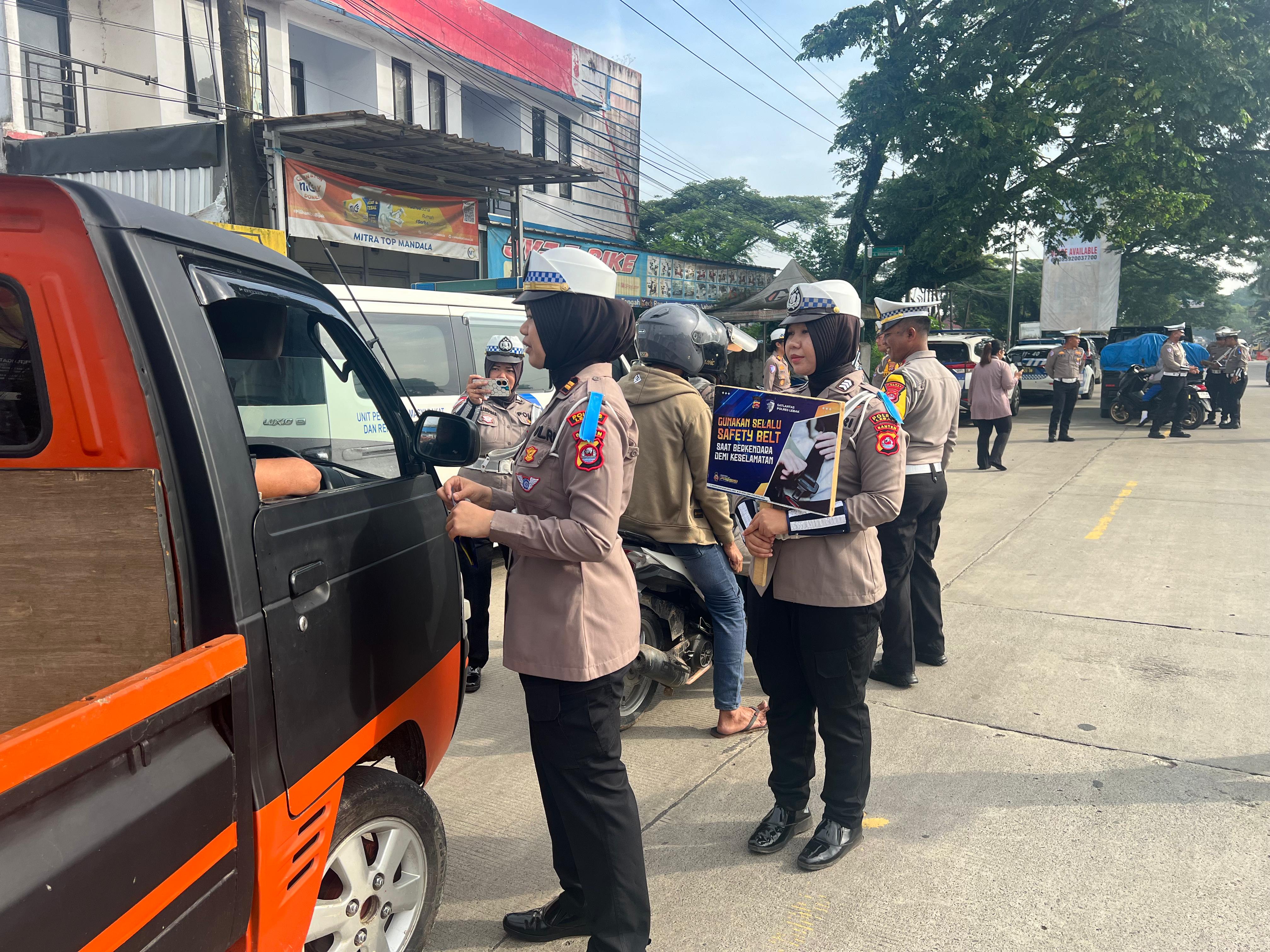 Petugas melakukan razia terhadap pengendara yang tidak mematuhi aturan lalu lintas, seperti tidak menggunakan helm, tidak mengenakan sabuk pengaman, dan berboncengan lebih dari satu orang. Selain itu, petugas juga memberikan sosialisasi tentang pentingnya keselamatan berlalu lintas kepada masyarakat.