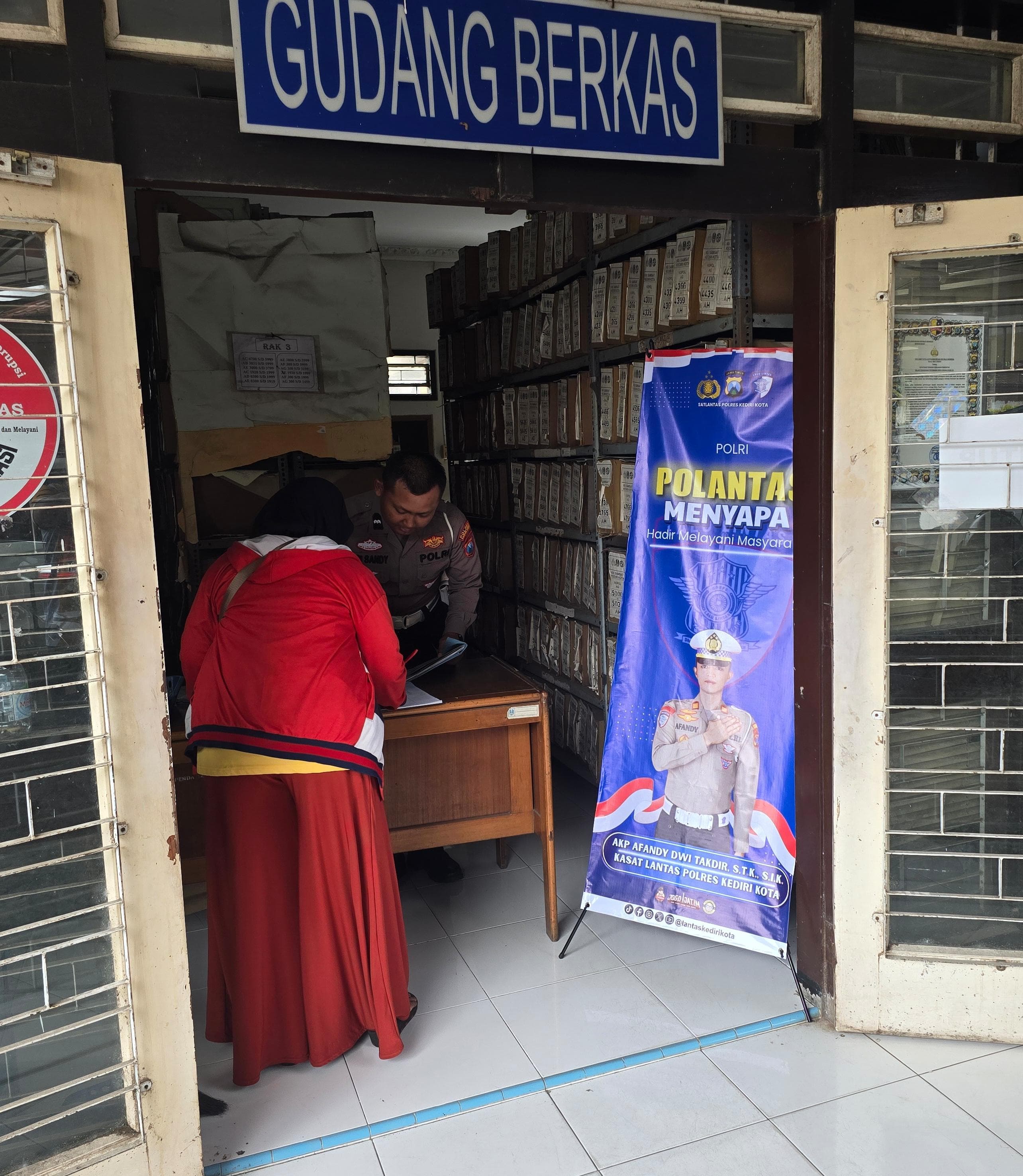 Sejak pagi, petugas Satlantas Polres Kediri Kota mendampingi warga yang tengah mengurus perpanjangan STNK, pajak tahunan, maupun proses administrasi lainnya. Interaksi yang terbangun berlangsung cair, memungkinkan warga menyampaikan pertanyaan secara langsung terkait prosedur dan ketentuan pajak kendaraan.