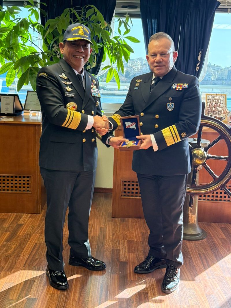 Athena –– Kepala Bakamla RI Laksdya TNI Dr. Irvansyah, S.H., M.Tr.Opsla., menggelar pertemuan bilateral dengan Hellenic Coast Guard (HCG) guna memperkuat kerja sama di bidang keamanan dan keselamatan maritim. Pertemuan dilaksanakan di kantor Pusat HCG di Pireus, Yunani, Senin (24/11/2025).