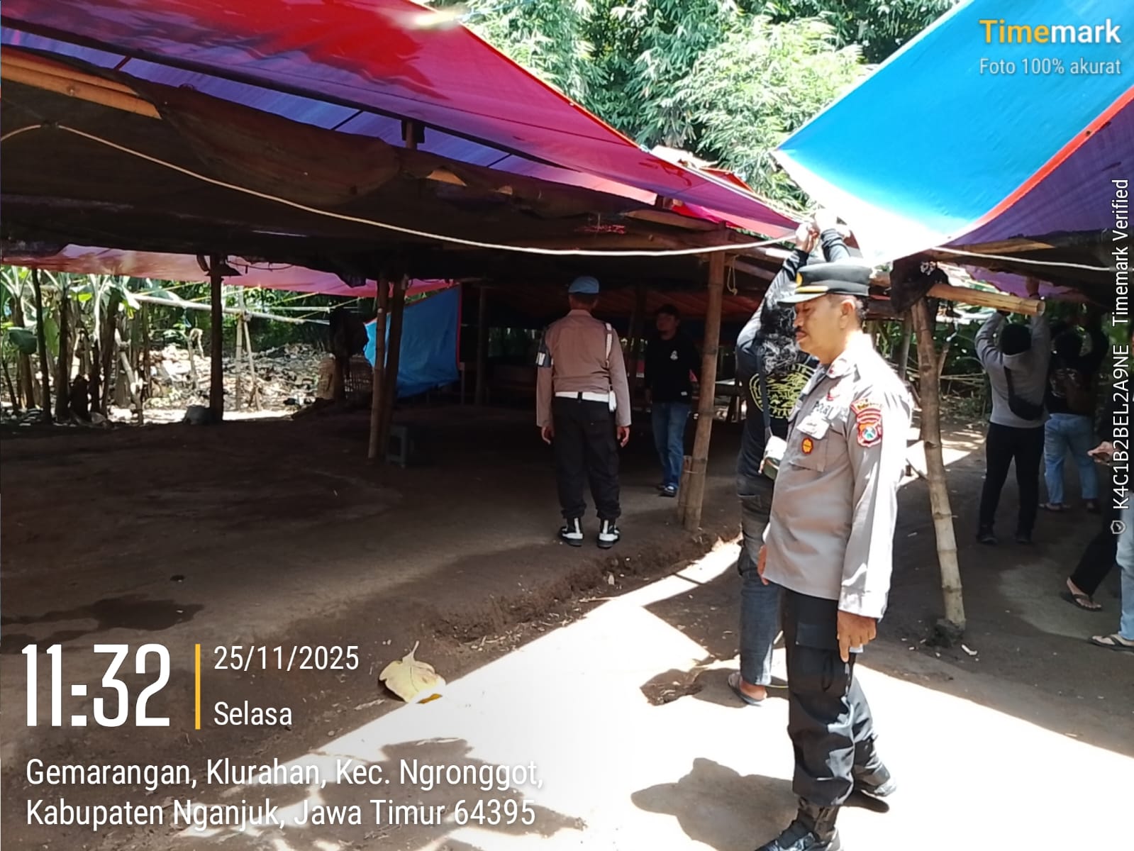 PURNAMA NEWS.COM | NGANJUK – Polsek Ngronggot bersama Unit Resmob Satreskrim Polres Nganjuk membongkar lokasi yang diduga dijadikan arena perjudian sabung ayam di lahan kosong belakang rumah warga di Desa Klurahan, Kecamatan Ngronggot, Kabupaten Nganjuk, Selasa (25/11/2025).