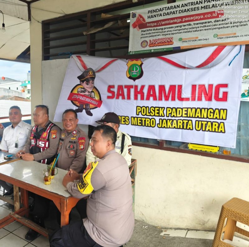 JAKARTA — Untuk menjaga situasi keamanan dan ketertiban masyarakat tetap kondusif, Polsek Pademangan melakukan kegiatan Cooling System dan edukasi keamanan lingkungan di Pasar Elang, Pademangan Timur, Jakarta Utara, Rabu siang (26/11/2025).