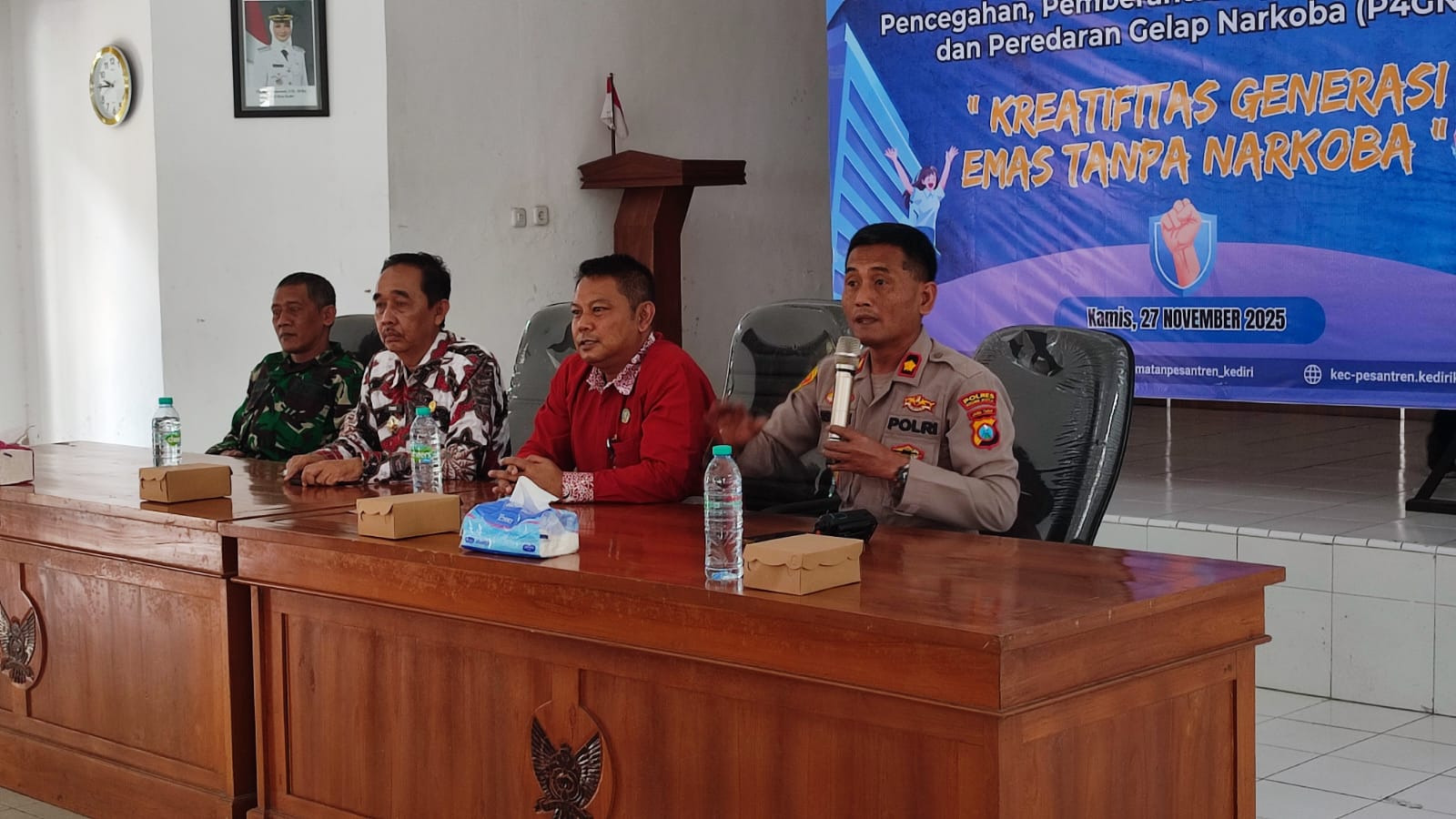 PURNAMA NEWS.COM | KEDIRI KOTA – Komitmen bersama dalam memerangi penyalahgunaan dan peredaran gelap narkotika kembali ditegaskan serta digaungkan melalui kegiatan Sosialisasi dan Dialog Interaktif Pencegahan, Pemberantasan, Penyalahgunaan, dan Peredaran Gelap Narkoba (P4GN) di Gedung Pertemuan Kantor Kecamatan Pesantren, Jalan Brigjen Pol. Imam Bachri, Kelurahan Bangsal, Kecamatan Pesantren, Kota Kediri, Jawa Timur, pada Kamis (27/11/2025), pukul 09.00 hingga 12.00 WIB dengan menghadirkan jajaran pemangku kepentingan tingkat kecamatan hingga perwakilan pemuda.
