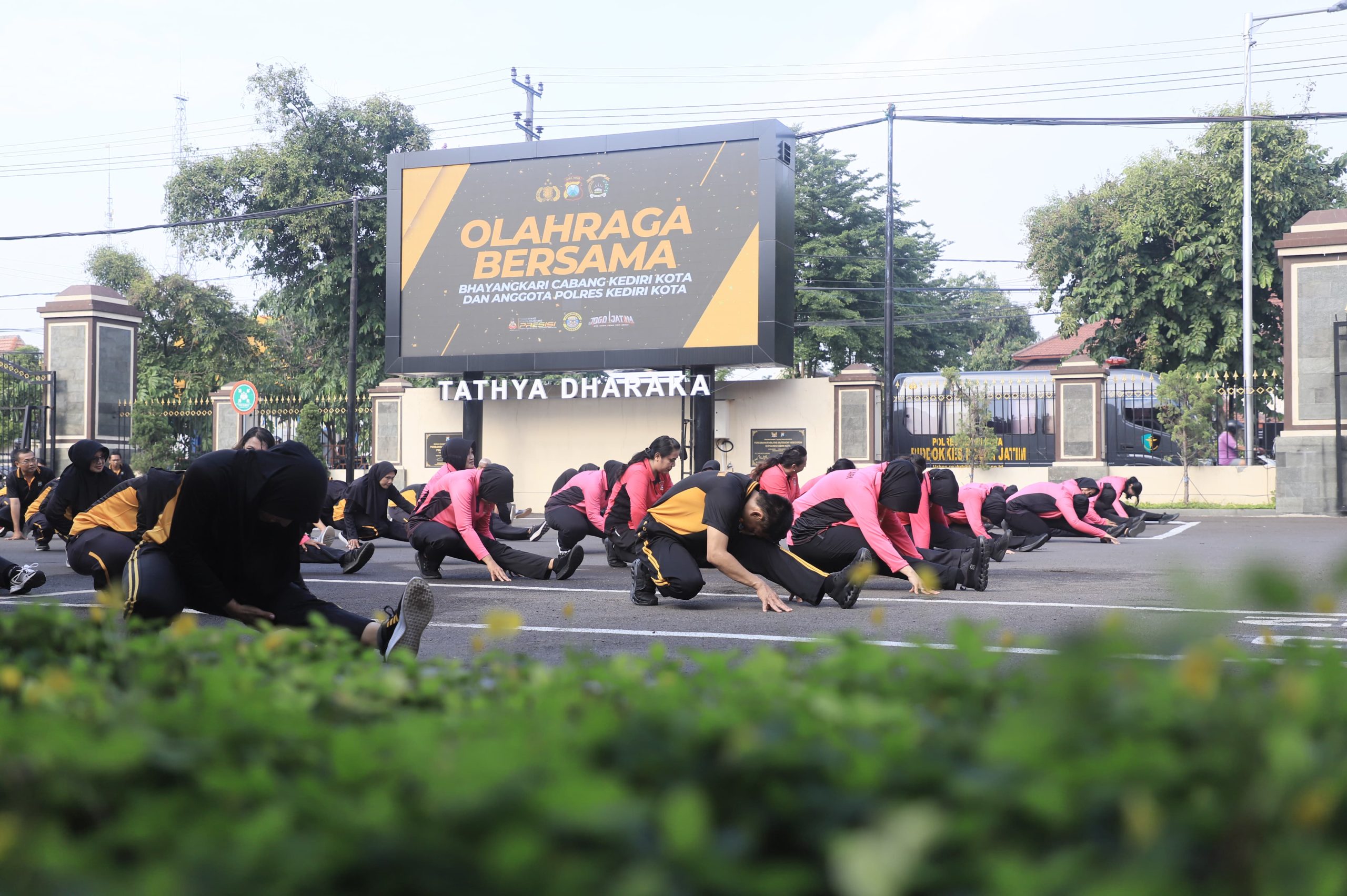 PURNAMA NEWS.COM | KEDIRI KOTA — Suasana hangat dan penuh keakraban menyelimuti halaman Mako Polres Kediri Kota. Usai apel pagi, Kapolres Kediri Kota AKBP Anggi Saputra Ibrahim, S.H., S.I.K., M.H., bersama Ketua Bhayangkari Cabang Kediri Kota memimpin langsung kegiatan olahraga bersama yang diikuti PJU, personel, dan anggota Bhayangkari, Jumat (12/12).