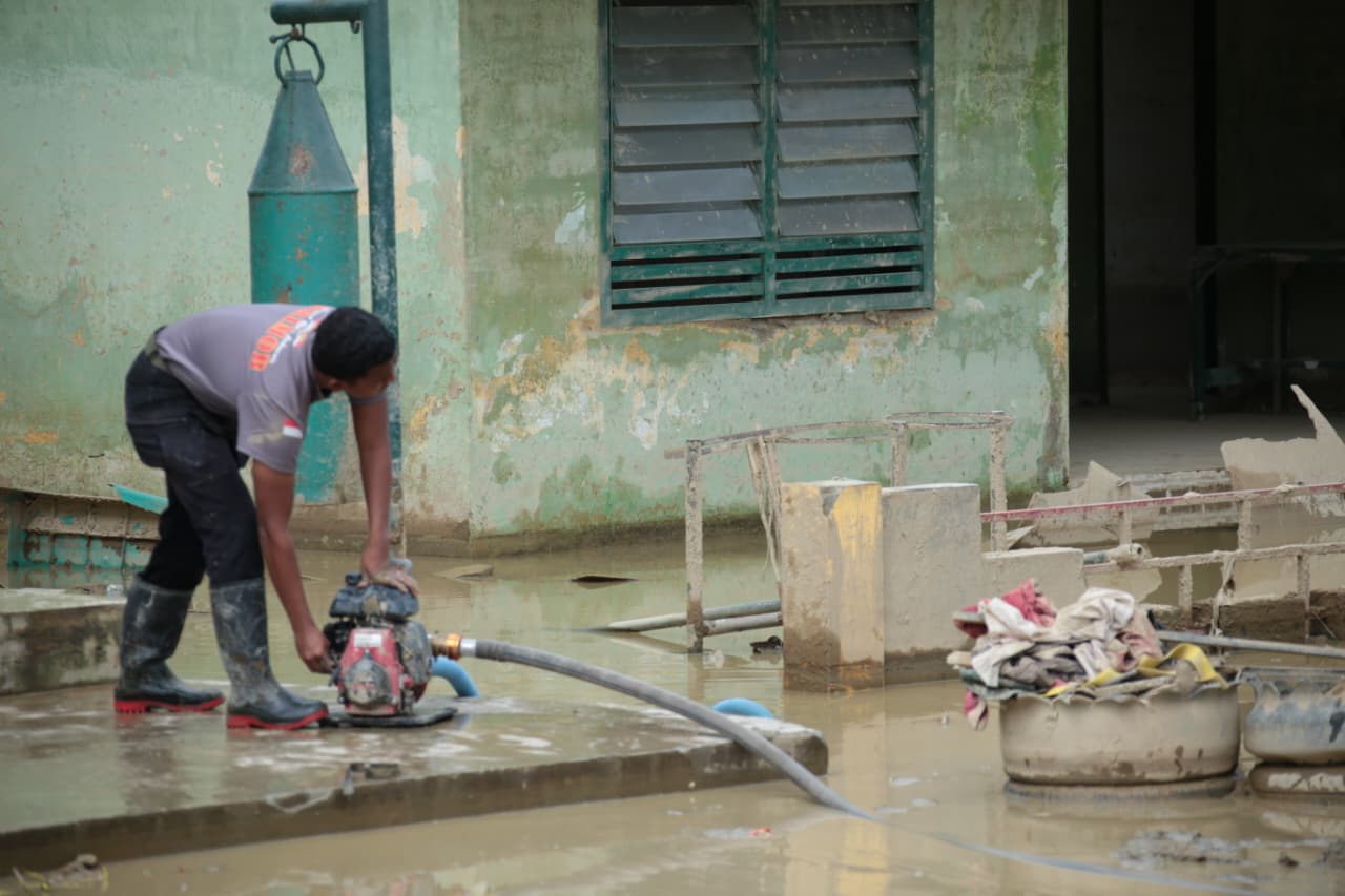 “Disini, kami membantu kompi senapan untuk menyedot air yang tergenang di markas kompi senapan” Jelas Ipda Roy.