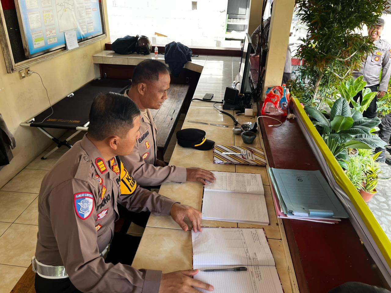 Selain itu, personel diminta untuk secara aktif melaporkan perkembangan situasi dan kondisi keamanan kepada Perwira Siaga sebagai bagian dari sistem pengendalian lapangan. Pengecekan administrasi pos, termasuk pemeriksaan buku mutasi, juga dilakukan guna memastikan seluruh aktivitas pengamanan tercatat dengan tertib dan akuntabel.