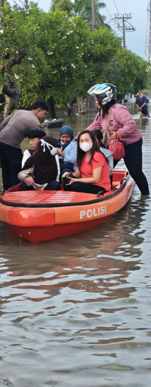 Evakuasi dipimpin langsung oleh Kasat Samapta Polres Metro Tangerang Kota Kompol Ubaidillah, S.H., M.A., dengan menggunakan perahu dinas Polri serta perahu bantuan dari pihak Kecamatan Kosambi dan Teluknaga. Ketinggian air di lokasi dilaporkan mencapai sekitar satu meter, sehingga menyulitkan mobilitas warga.