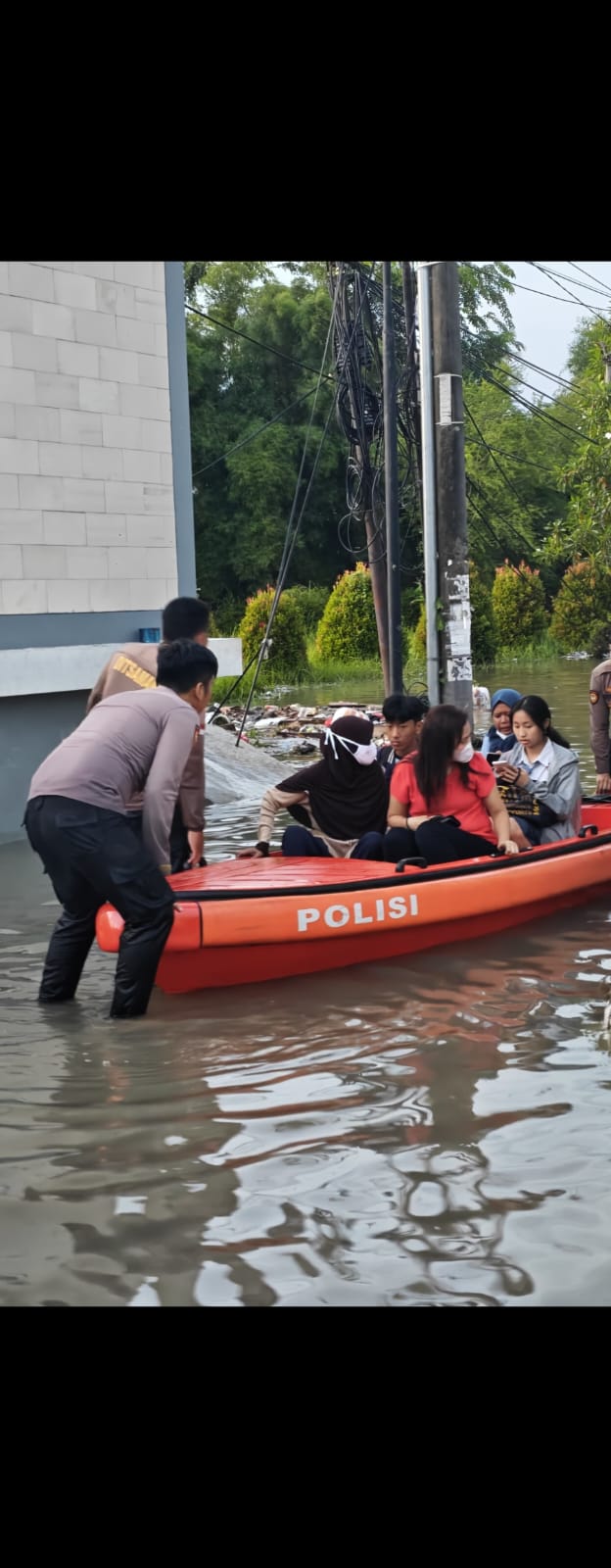 Tangerang – Satuan Samapta Polres Metro Tangerang Kota melaksanakan evakuasi warga masyarakat yang terdampak banjir di Perumahan Duta Bandara Permai, Kecamatan Kosambi, Kabupaten Tangerang, pada Senin siang (12/1/2026).