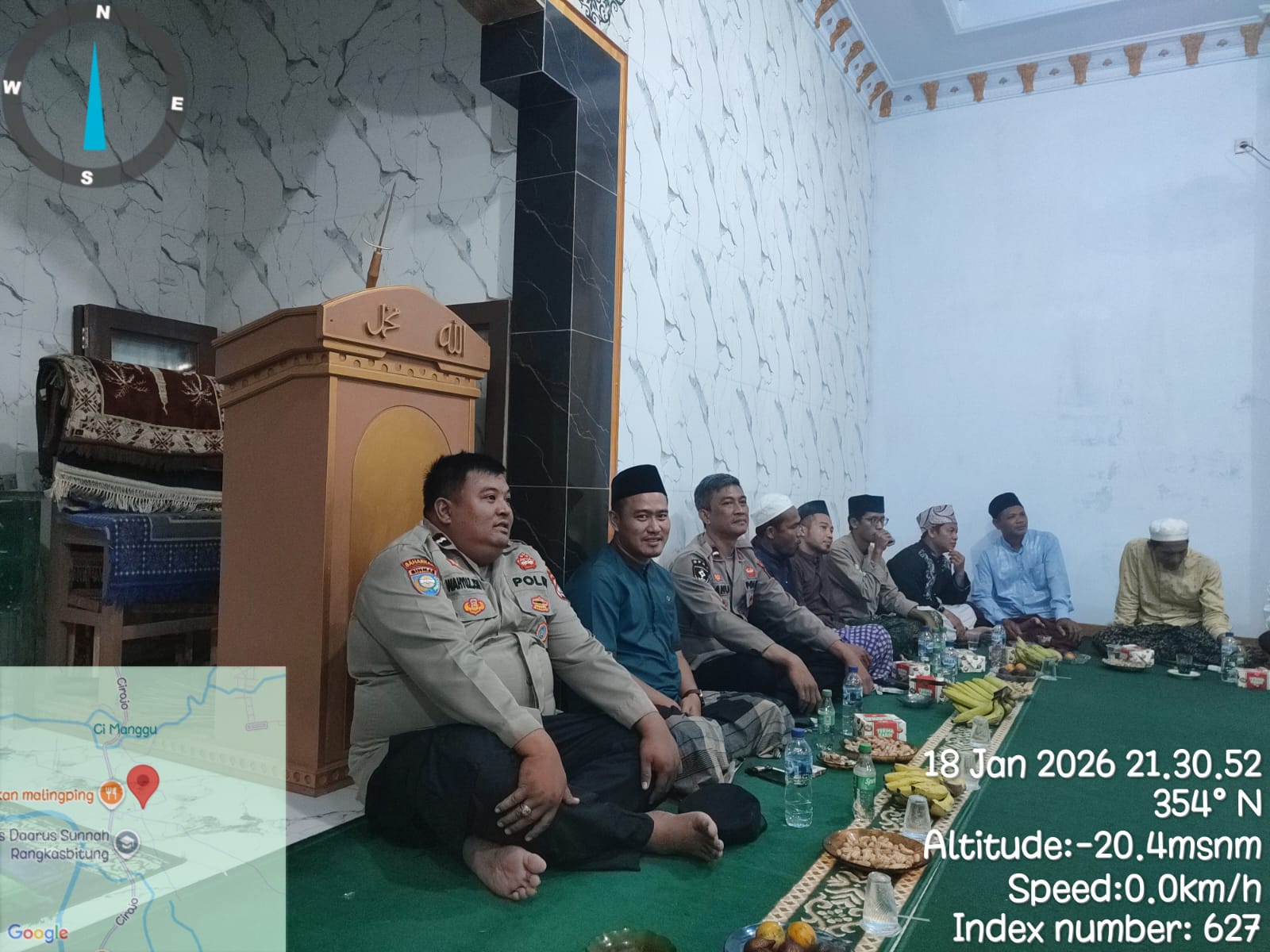 Purnamanews.com – LEBAK, Personil Polsek Rangkasbitung Polres Lebak,Kanit Reskrim Polsek Rangkssbitung IPDA Herman,.SH,AIPDA Danu Nugraha,AIPDA Wahyu Zjatmiko dan BRIPKA Agus Setianto menghadiri acara Isra Mi’rad,