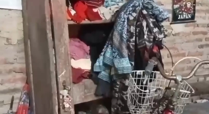 Di sudut rumah, sebuah dipan kayu lapuk menjadi tempat tidur Nurokhim. Ia tidur tanpa kasur, hanya beralas papan yang mulai keropos.