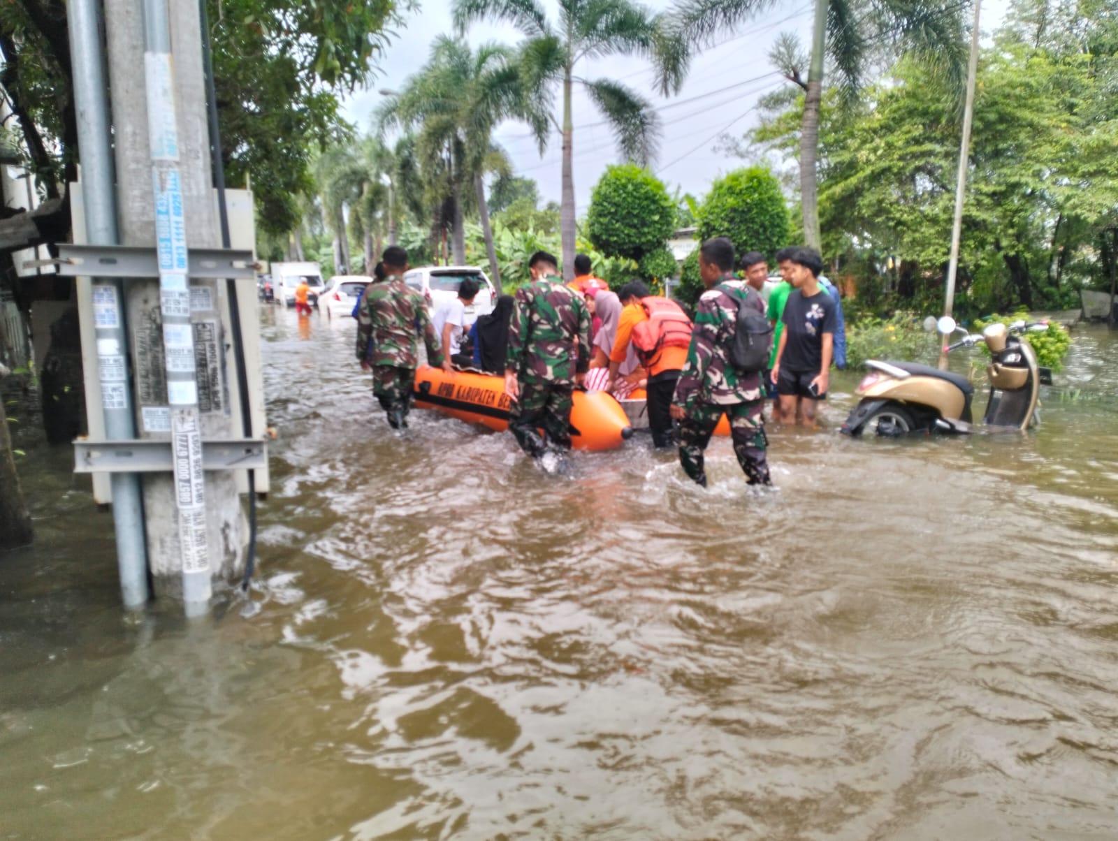 Bekasi – Korem 051/Wijayakarta bersama jajaran Kodim dan Badan Penanggulangan Bencana Daerah (BPBD) Kabupaten Bekasi melaksanakan evakuasi warga serta pendistribusian bantuan logistik kepada korban banjir di wilayah Puri Cikarang, Kecamatan Cikarang Utara, Kabupaten Bekasi, Jumat (23/1/2026).