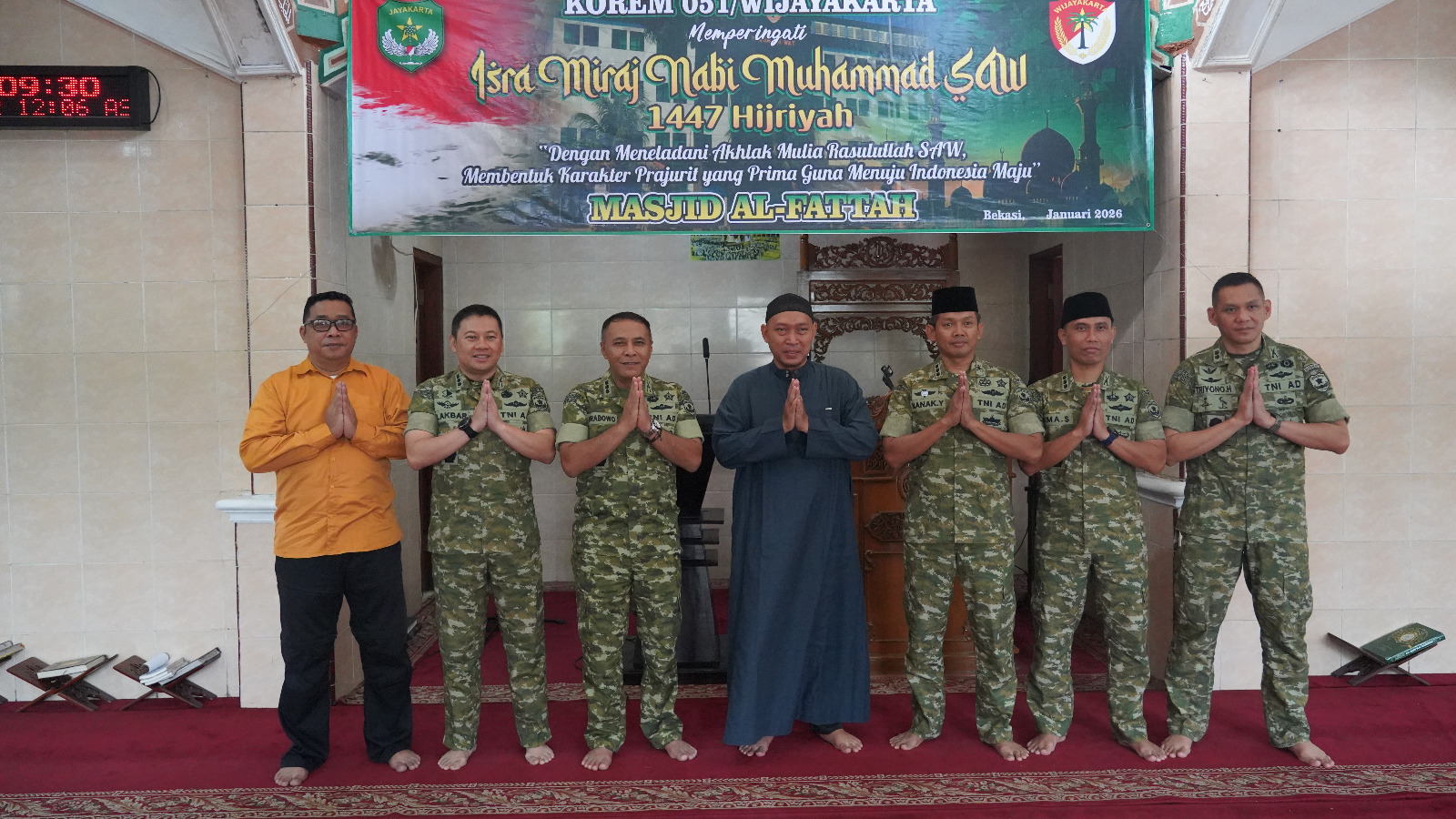 Cikarang– Mengusung tema “Dengan Meneladani Akhlak Mulia Rasulullah SAW Membentuk Karakter Prajurit yang Prima Guna Menuju Indonesia Maju”, Korem 051/ Wijayakarta melaksanakan peringatan Isra Mi’raj Nabi Muhammad SAW 1447 H/2026 M di Masjid Al-Fattah Korem 051/ Wijayakarta. Jum’at (23/1/2026).