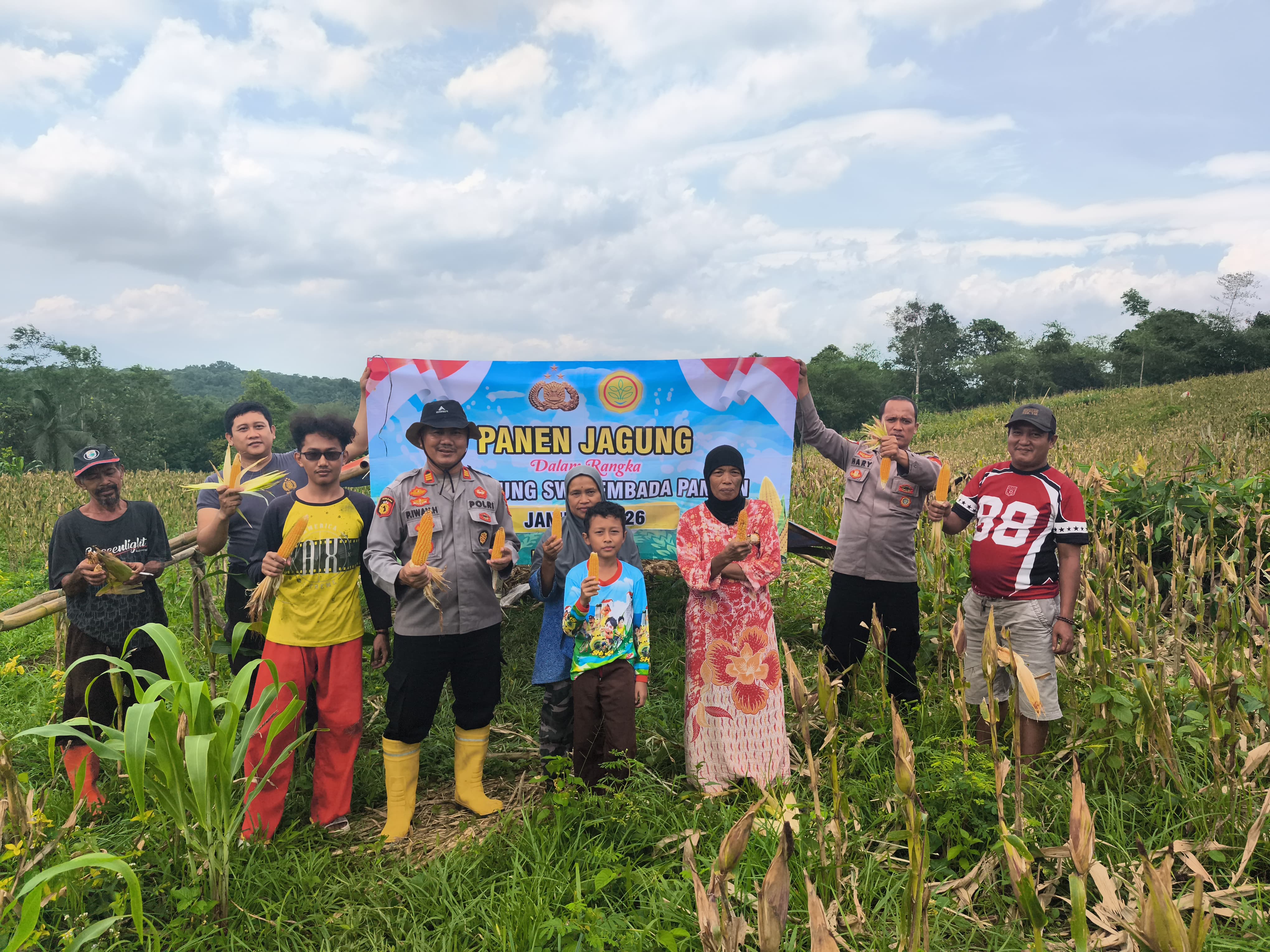 Purnamanews.com – Lebak, Dalam rangka bentuk dukungan terhadap program Asta Cita Bapak Presiden Republik Indonesia H. Prabowo Subianto yakni ketahanan pangan nasional, Polsek Cimarga Polres Lebak bersama Petani menggelar panen raya jagung hibrida di kampung Cikapek desa Sarageni kecamatan Cimarga, Kabupaten Lebak. Sabtu (24/1/2026).