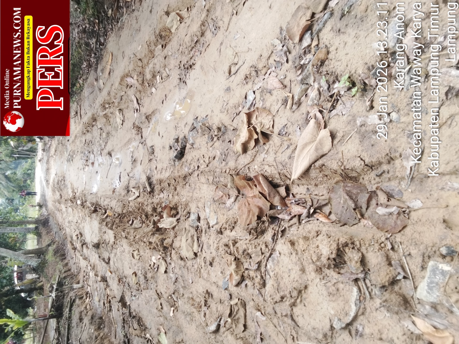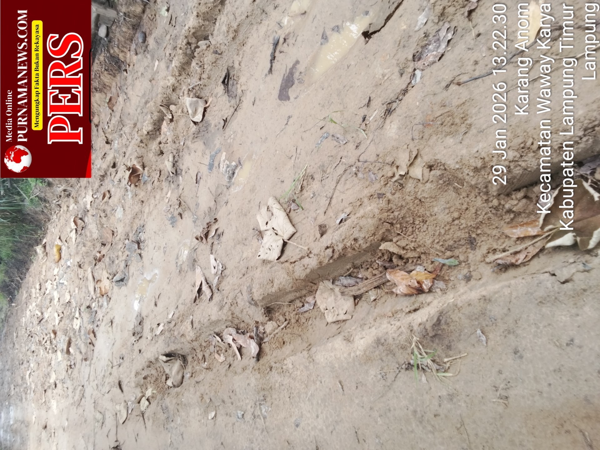 Purnamanews.com Lampung Timur waway karya : pekerjaan peningkatan jalan onderlaug desa karang Anom Diduga langgar Regulasi Dan aturan, pekerjaan angaran 2025 yang harusnya selesai atau det len 31 Desember 2025 Hinga Januari 2026 tidak selesai