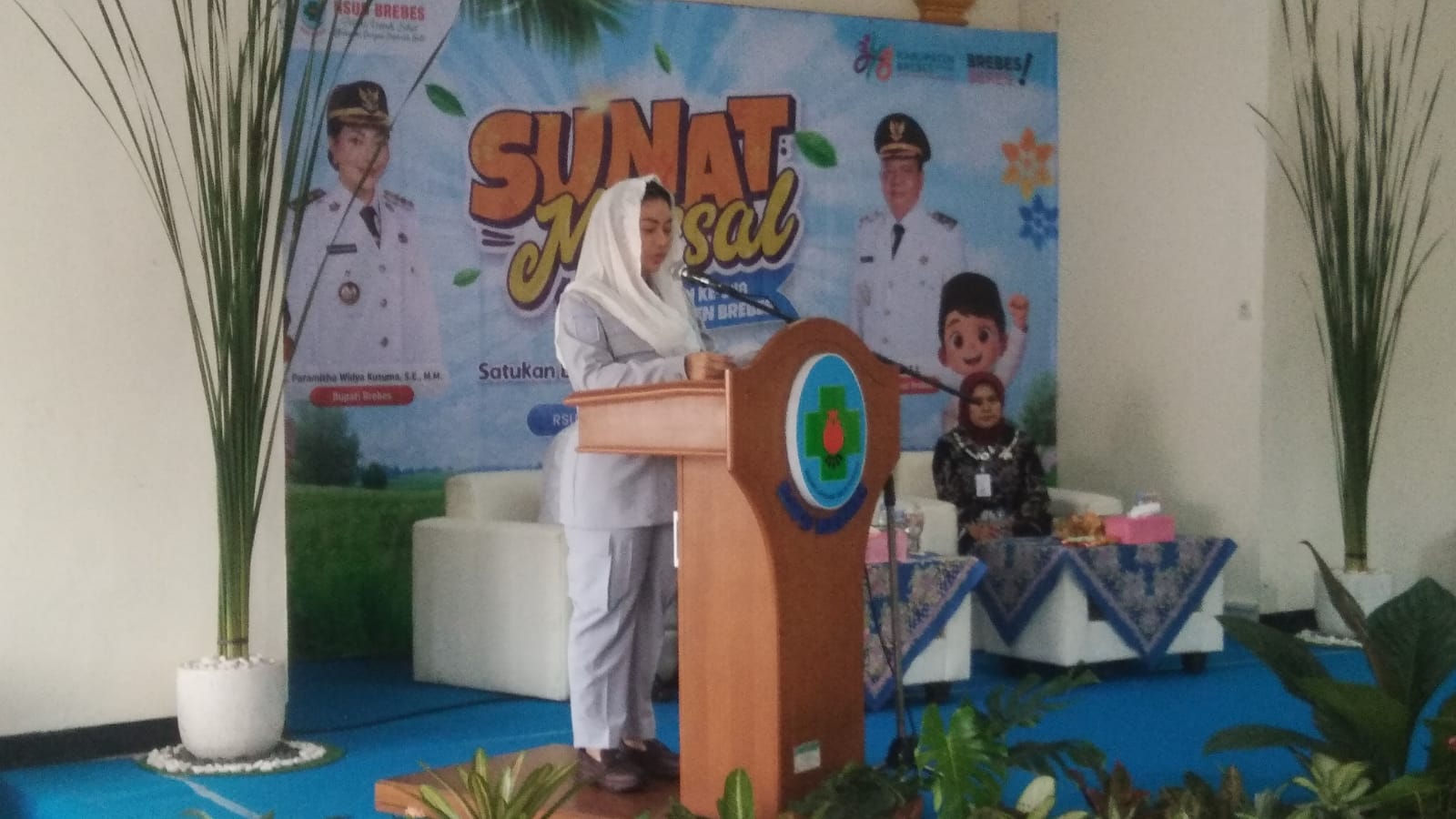 Bupati Brebes Hj. Paramitha Widya Kusuma dalam sambutannya mengatakan, ” Sunat massal ini adalah rangkaian dari hari jadi kabupaten Brebes ke 348 yang di laksanakan di tiga tempat berbeda, yang pertama RSUD Brebes, ke dua RSUD Soekarno ketanggungan dan ketiga RSUD Bumiayu”.