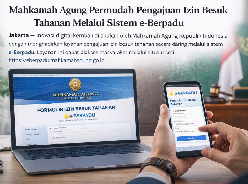 Purnamanews.com – Jakarta novasi digital kembali dilakukan oleh Mahkamah Agung Republik Indonesia dengan menghadirkan layanan pengajuan izin besuk tahanan secara daring melalui sistem e-Berpadu.