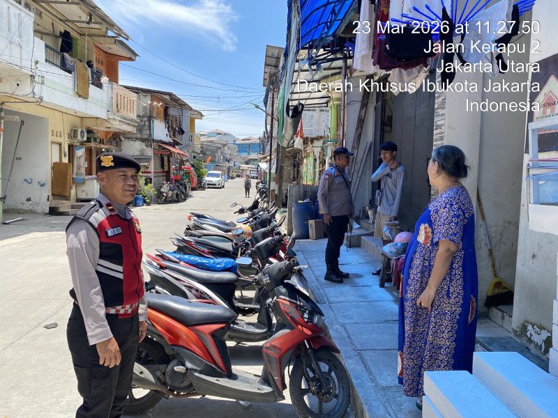 Jakarta – Dalam rangka mengantisipasi tindak pidana pencurian selama musim mudik Lebaran, jajaran Polsek Kawasan Sunda Kelapa, Polres Pelabuhan Tanjung Priok melaksanakan kegiatan patroli di wilayah padat penduduk, khususnya di kawasan Muara Angke, pada Senin (23/3/2026).