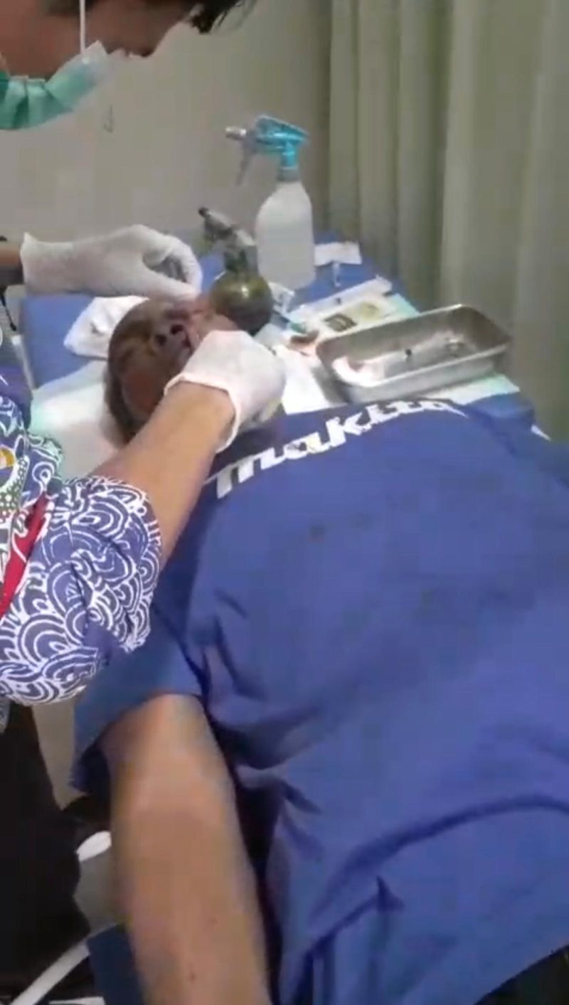 Korban yang tak berdaya akhirnya harus dilarikan ke Puskesmas Camplong untuk mendapatkan perawatan medis akibat luka yang cukup parah.