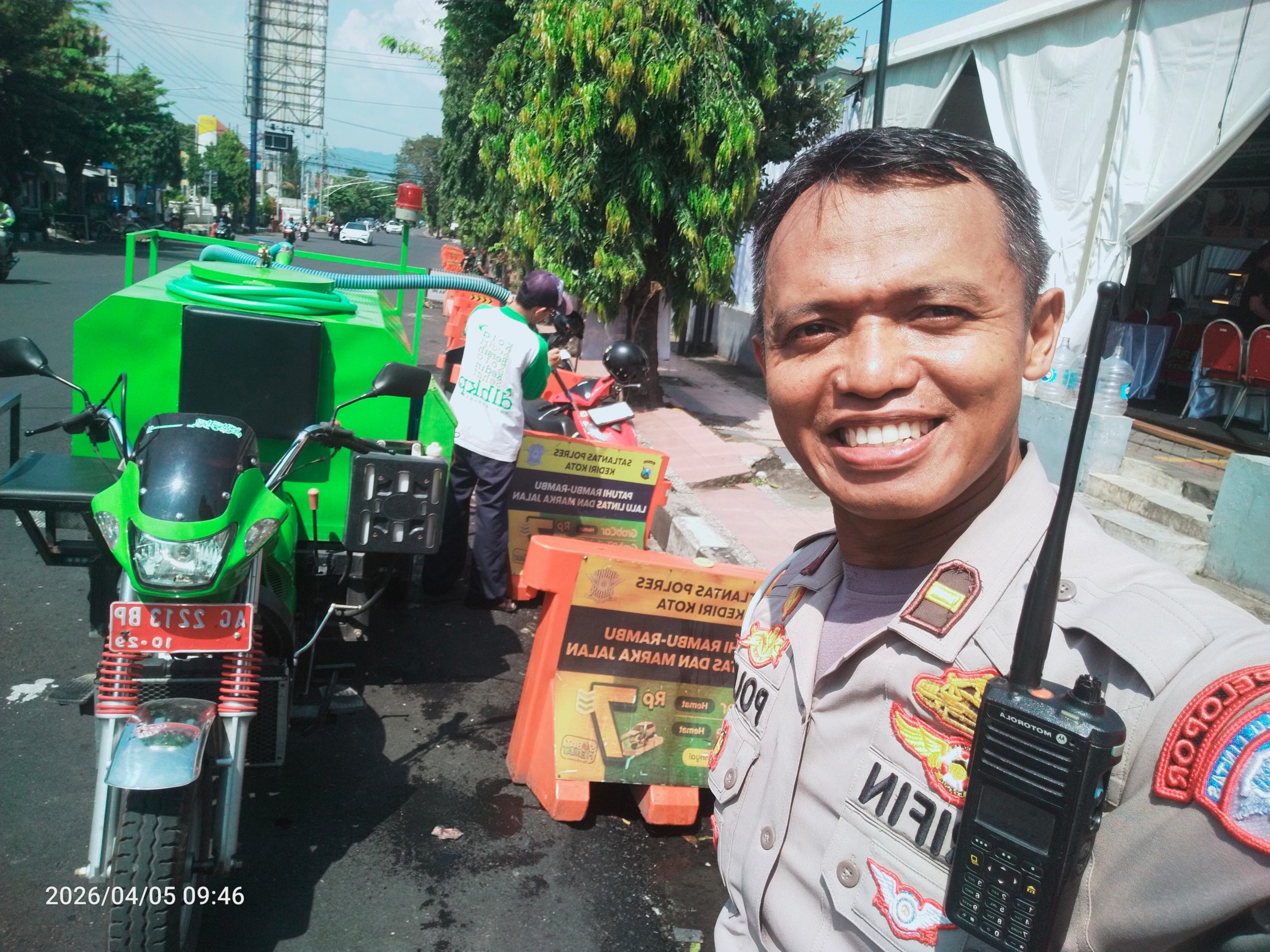 “ Pemasangan water barrier ini bertujuan untuk mencegah parkir liar di bahu jalan yang berpotensi menimbulkan kemacetan, sekaligus memberikan kenyamanan dan keamanan bagi masyarakat yang melintas maupun pengunjung acara,” ujarnya, Minggu (05/04/2026 )