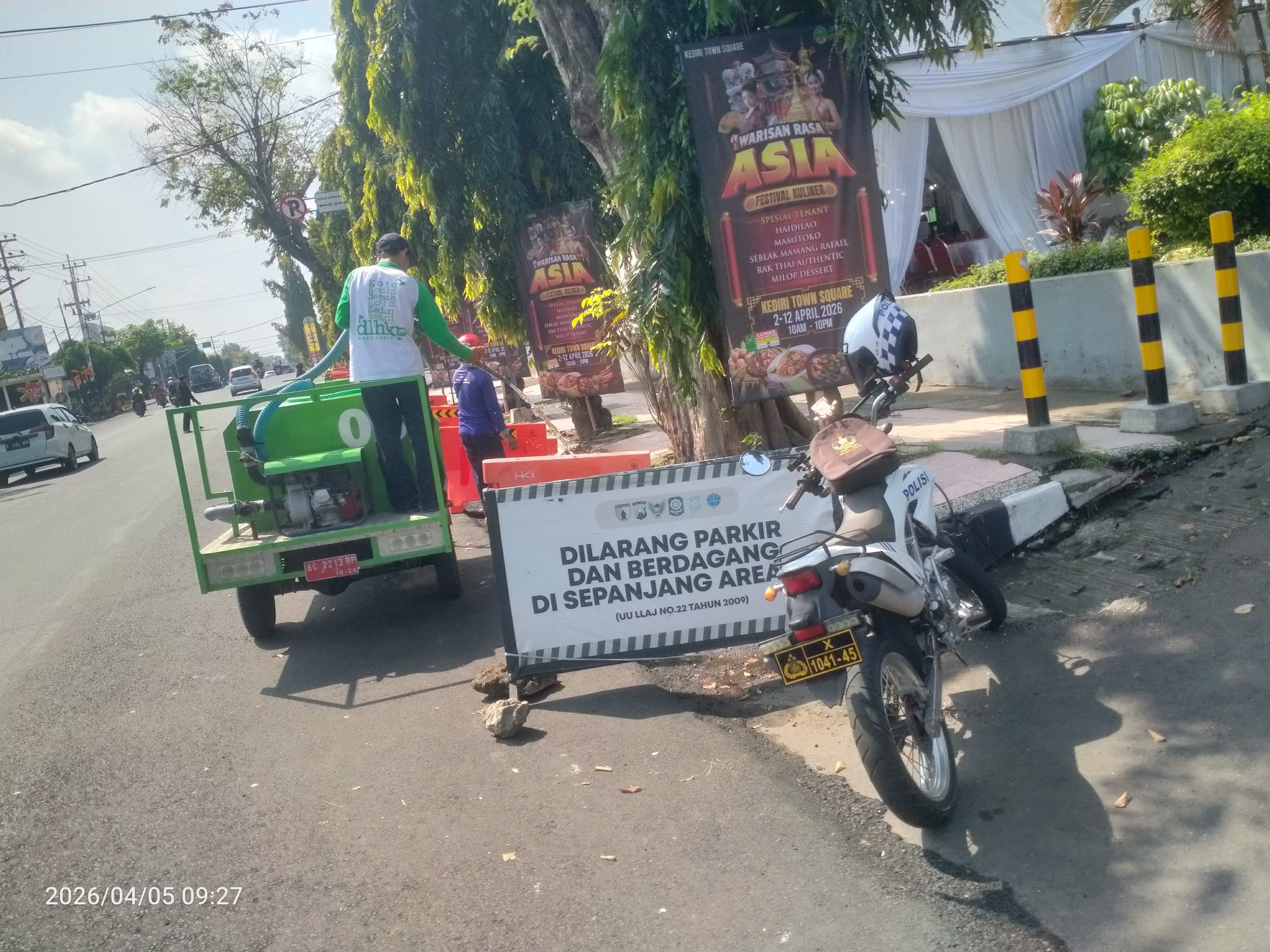 PURNAMA NEWS.COM | KEDIRI KOTA – Satuan Lalu Lintas (Satlantas) Polres Kediri Kota melalui Unit Turjagwali melakukan pemasangan water barrier di depan Kediri Town Square (Ketos), Jalan Hasanuddin, Minggu (5/4/2026). Langkah ini dilakukan sebagai upaya antisipasi parkir liar imbas dari acara event bazar “Jangkrik Kuliner Nusantara”.