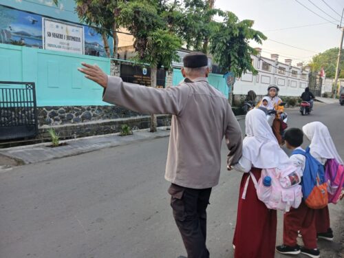 Kapolres Lebak Polda Banten AKBP Herfio *Cegah Lakalantas,Kanit Binmas Polsek Rangkasbitung Polres Lebak Gatur Lalin dan Sebrangkan Anak Pelajar SDN 1 Jatimulya*