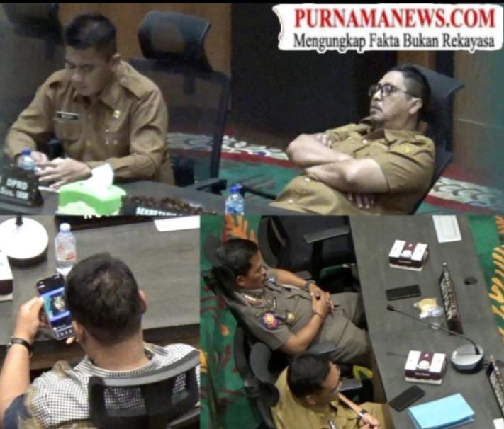 Pasalnya, di tengah agenda penting tersebut, sejumlah aparatur sipil negara (ASN) justru menunjukkan sikap tidak profesional. Kepala OPD berinisial MH dan Sekda berinisial IE terlihat tidak mencerminkan keseriusan dalam mengikuti jalannya rapat.