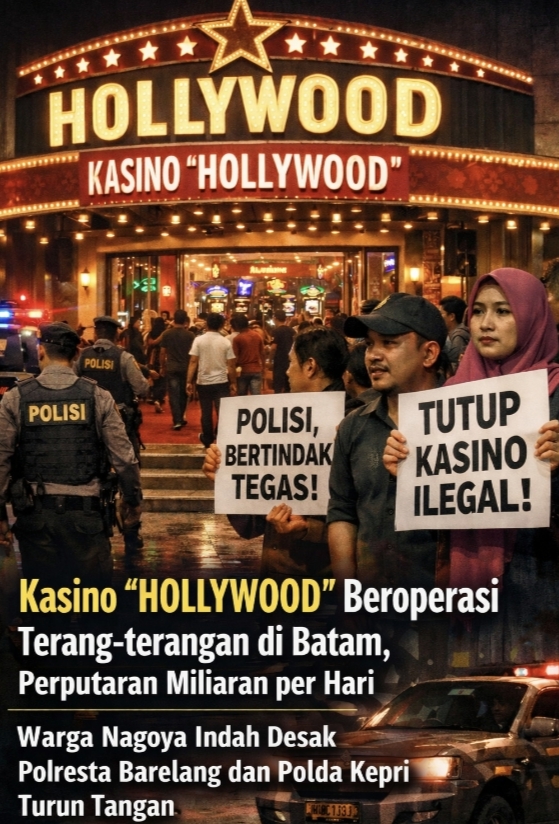 Purnamanews.com – Batam Sorotan tajam kembali mengarah ke maraknya praktik perjudian di Kota Batam yang dinilai kian terang-terangan dan sulit disentuh hukum. “Hollywood” Kasino Beroperasi Terang-terangan Batam Darurat Judi ? Perputaran Miliaran Rupiah per Hari
