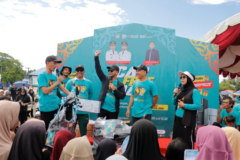 Purnamanews.com, Meulaboh – Car Free Day (CFD) perdana tahun 2026 di Kabupaten Aceh Barat yang digelar bersama Bank Syariah Indonesia (BSI) berlangsung meriah. Kegiatan yang dipusatkan di Jalan Merdeka, Gampong Suak Indrapuri, Minggu (19/4/2026) ini dipadati ribuan masyarakat dari berbagai kalangan.
