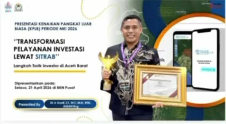 Dr. Kurdi Harumkan Aceh Barat Buktikan Prestasi ASN Dan Inovasi Sitrap. Sebuah Aplikasi Transformasi Pelayanan Investasi.