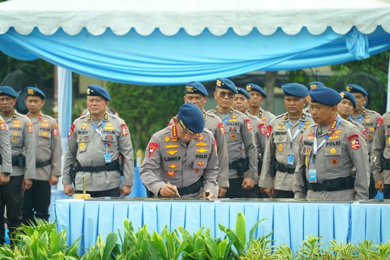 Depok – Kepala Kepolisian Negara Republik Indonesia, Jenderal Polisi Listyo Sigit Prabowo, memimpin apel pengarahan kepada personel Korps Brimob Polri yang dirangkaikan dengan pembukaan Rapat Kerja Teknis (Rakernis) Korps Brimob Polri Tahun 2026 di Lapangan Mako Korbrimob Polri Kelapadua, Cimanggis, Kota Depok, Jawa Barat, Selasa (21/4/2026).