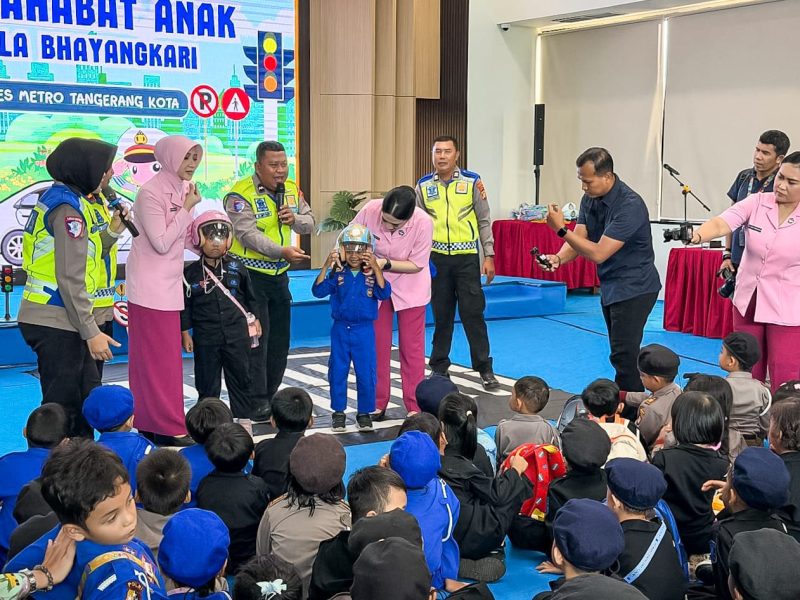 TANGERANG — Satuan Lalu Lintas Polres Metro Tangerang Kota terus berupaya menanamkan kesadaran tertib berlalu lintas sejak usia dini melalui program Polisi Sahabat Anak (Polsanak). Kegiatan edukatif ini digelar bersama siswa TK Kemala Bhayangkari Metro Tangerang Kota di Aula Polres Metro Tangerang Kota, Kamis (30/4/2026).