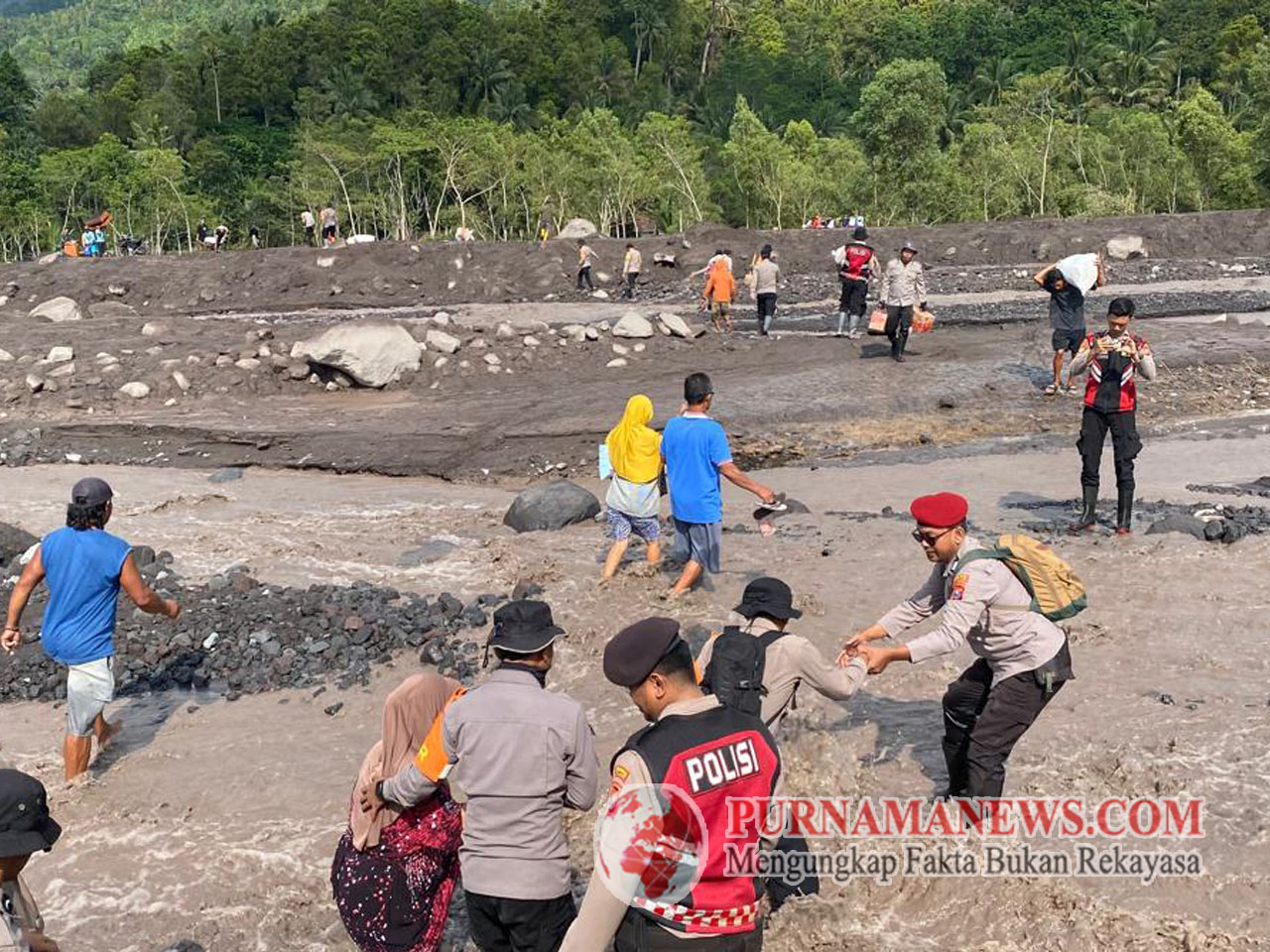 PURNAMA NEWS.COM | LUMAJANG – Sejumlah personel Polres Lumajang, Polda Jawa Timur (Jatim) diterjunkan untuk membantu warga masyarakat yang menyeberangi aliran banjir lahar Gunung…