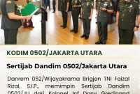 Tangerang – Komandan Korem 052/ Wijayakrama Brigjen TNI Faizal Rizal, S.I.P., memimpin langsung kegiatan serah terima jabatan (sertijab) Dandim 0502/Jakarta Utara di Makorem 052/Wkr,…